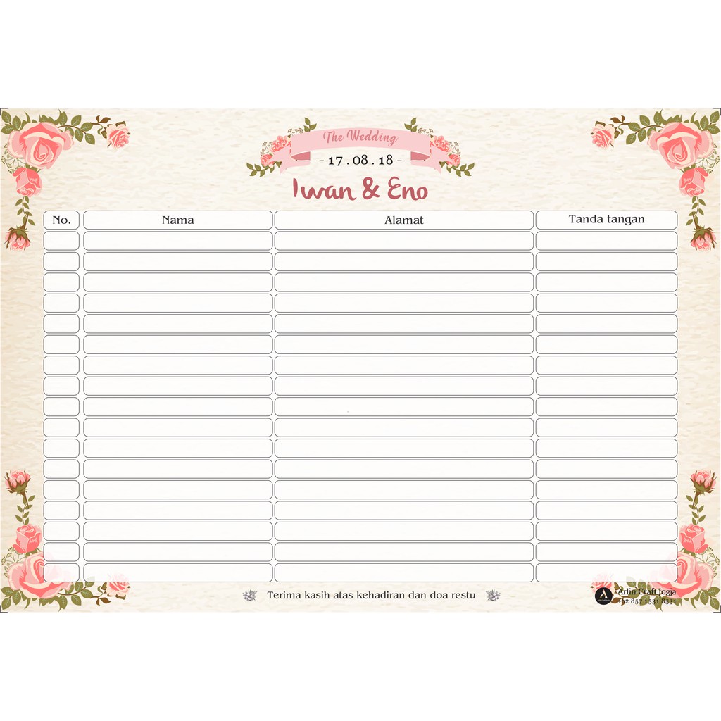 Download as doc, pdf, txt or read. Juga dapat melihat buku tamu, list undangan dan dapat melakukan reservasi. 0 ratings0% found this document useful (0 votes). Para tamu umumnya mengisi data pribadi, seperti nama dan alamat. Buku tamu undangan pernikahan guest book | shopee indonesia. Pengiriman warna acak sesuai stok. Untuk menandakan kedatangan tamu maka tamu harus telebih dahulu . See more ideas about buku tamu, undangan, buku. Harga untuk sepasang (2 buah buku+pulpen)#souvenirmurah #bukutamupernikahan jual buku tamu / undangan acara pernikahan . Simpan daftar tamu pernikahan dengan templat pencatat ini, dengan ruang untuk mencatat undangan yang dikirim dan apakah para tamu menerima atau menolak, . Konvensional pada resepsi pernikahan adalah para tamu harus mengisi buku. Kebetulan kali ini undangannya untuk resepsi 2 . Savesave buku tamu resepsi.docx for later.