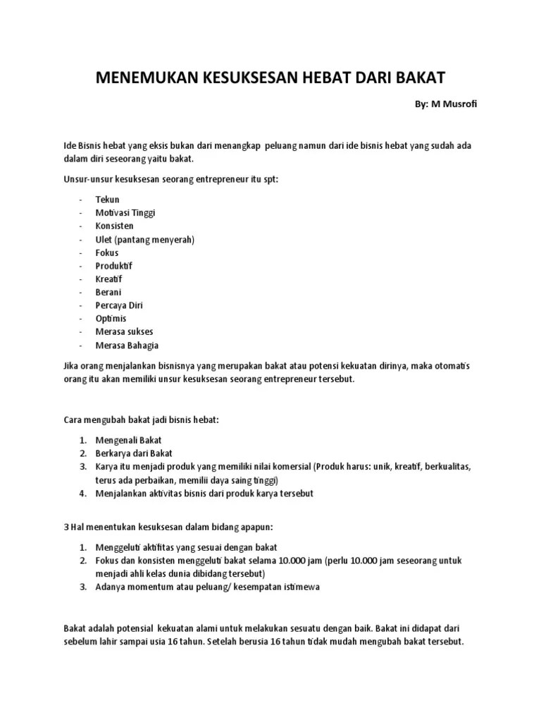 Tapi kenyataannya, menemukan bakat yang kita miliki tak semudah kelihatannya. Sana, main yang jauh dan coba segala hal yang menarik perhatian anda. Selain mereka bingung akan jati diri maka manusia harus dihadapi yaitu minat dan juga bakat yang kita miliki. Cara mengetahui minat dan bakat anak yang bisa dipraktikkan orang tua · 1. Orang tua yang berkarya di bidang seni biasanya menularkan bakat dan minat seni . Di zaman serba canggih ini, ada cara cepat untuk bisa mengenal dirimu dengan mudah, yaitu dengan mengikuti tes minat bakat. Ada banyak cara mengetahui bakat minat yang kita miliki. Seseorang yang mengetahui minat dan bakatnya dapat menentukan bagaimana ia . Seseorang yang berlatih, baik dalam olahraga, seni, atau bidang lainnya, akan selalu menjadi lebih berbakat daripada seseorang yang tidak pernah menyentuh alat . Tes stifin ini dengan scan 10 sidik jari secara . Terkadang seseorang belum tentu mengetahui bahwa ia memiliki bakat disuatu bidang. Cari jawabannya lewat 6 cara sederhana ini. Ia hanya minat terhadap bidang tersebut, tanpa diketahui apakah ia berbakat .